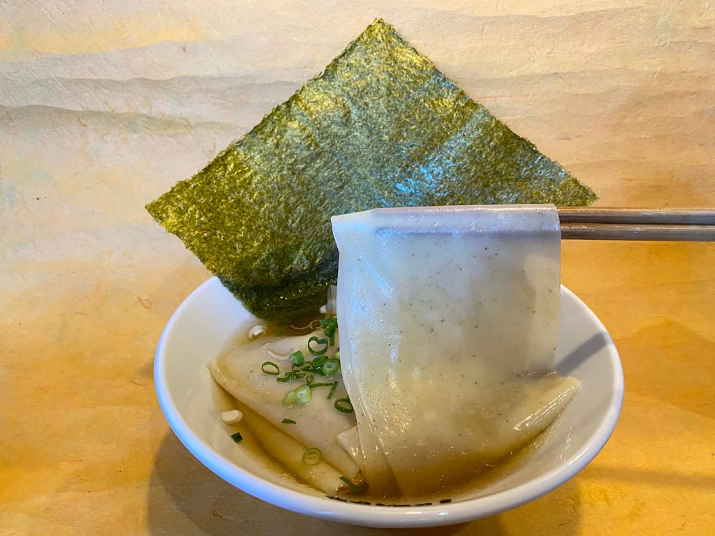 おそらく日本で一番幅の広い百年小麦のひもかわと手打ち麺の合盛りラーメン
